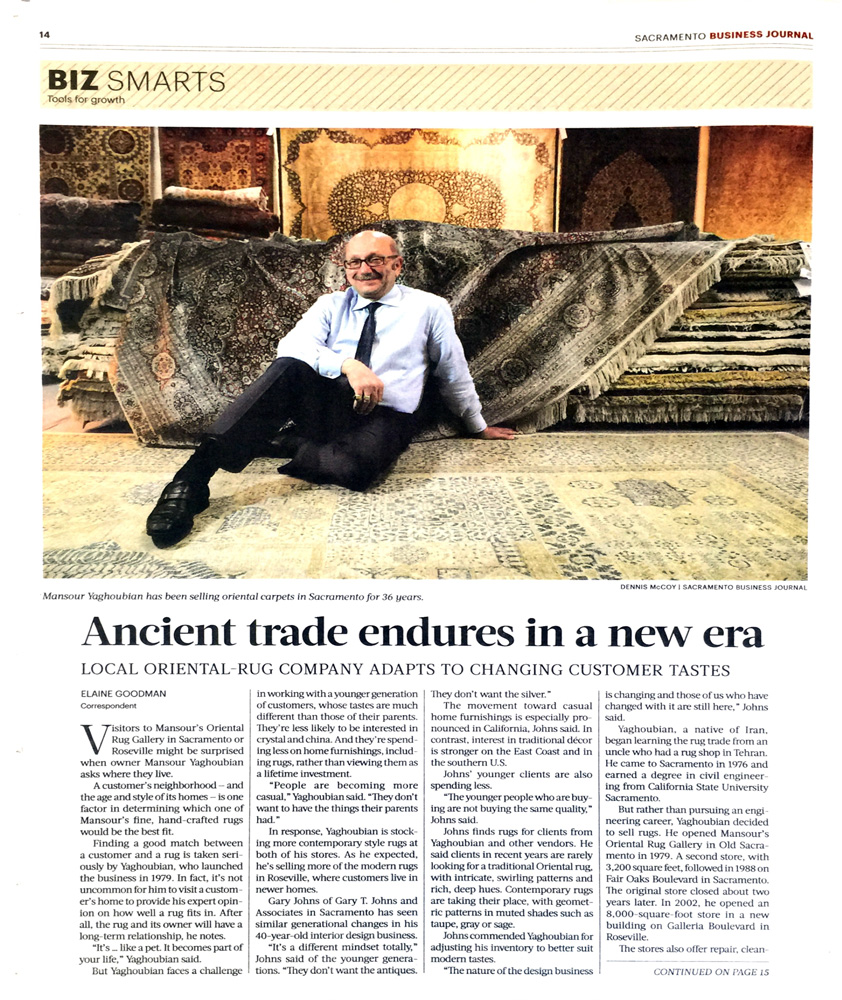 Previous Image Next Image 58887 Mansour talks to the Sacramento Business Journal about the changing market for providing Pakistani rugs to a discerning American market