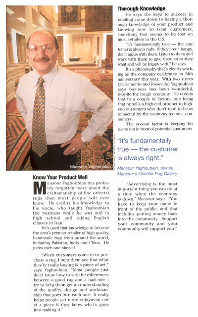 Previous Image Next Image 9848 Mansour’s beautiful hand-woven rugs are a unique artform, according to Central California art papers and trade magazines